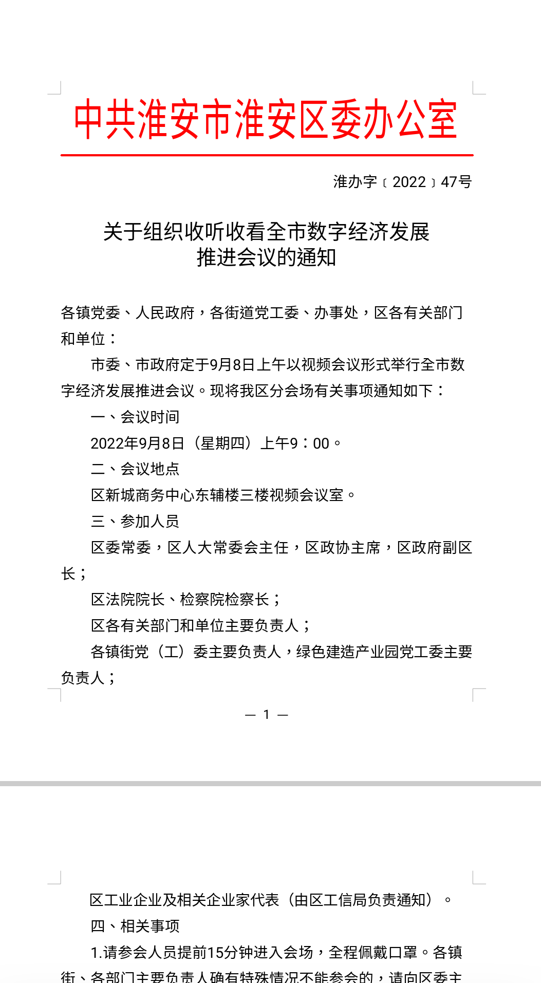 2022年9月8日,我公司代表参加淮安市数字经济发展推进会议。