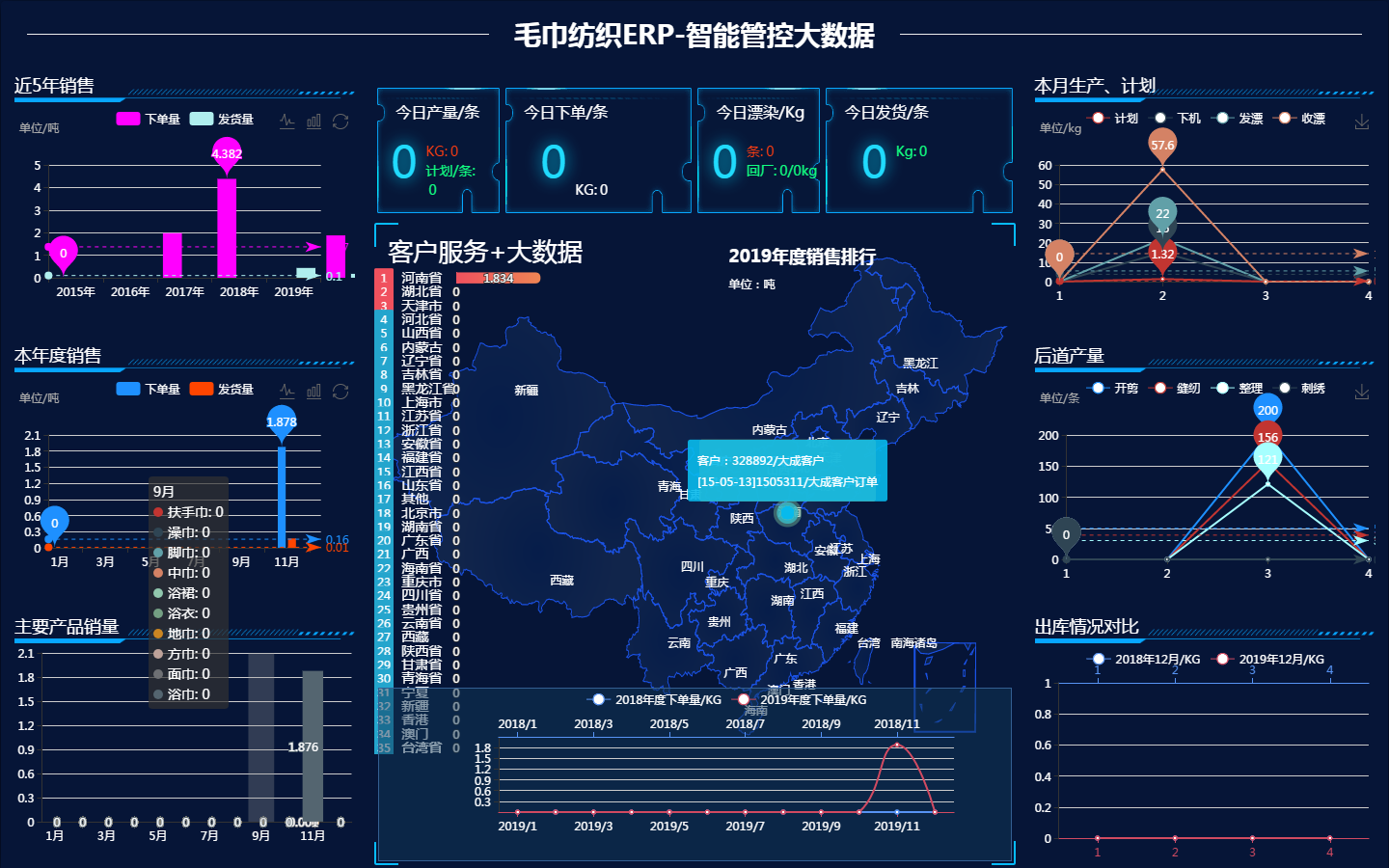 织造管理:检验日报、产量工资、生产计划管理、生产计划恢复、产质量日报汇总、日报超产记录、生产日报明细、合格废次品率、机器日报统计