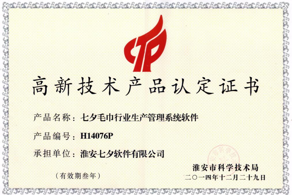 热烈祝贺淮安七夕软件有限公司获得淮安市高新技术企业认定