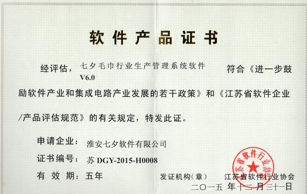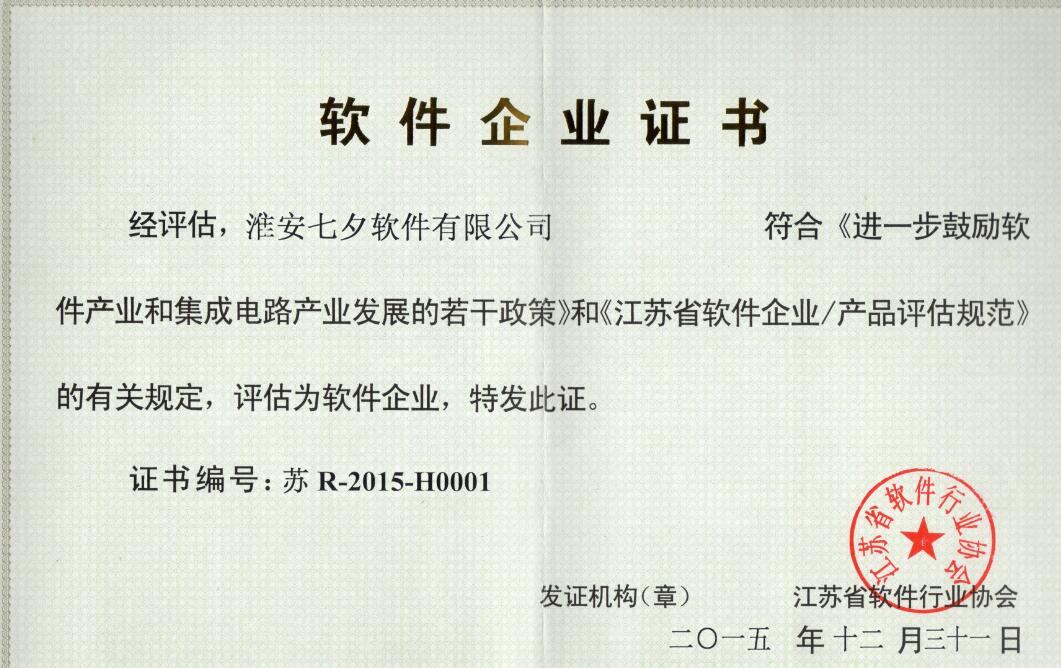 热烈祝贺淮安七夕软件有限公司通过江苏省软件行业协会的“双软认证”